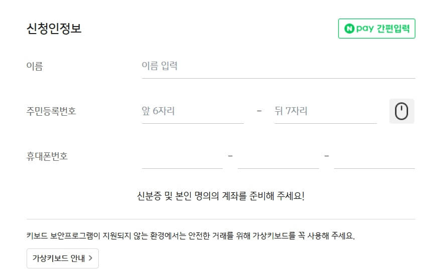 혹시 입력하는게 귀찮다,라고 하시는분은 우측 상단에 Npay 간편입력이 있습니다.