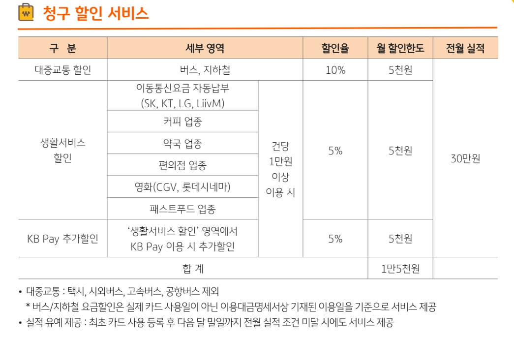 KB Pay 이용시 생활서비스 5% 추가 할인.