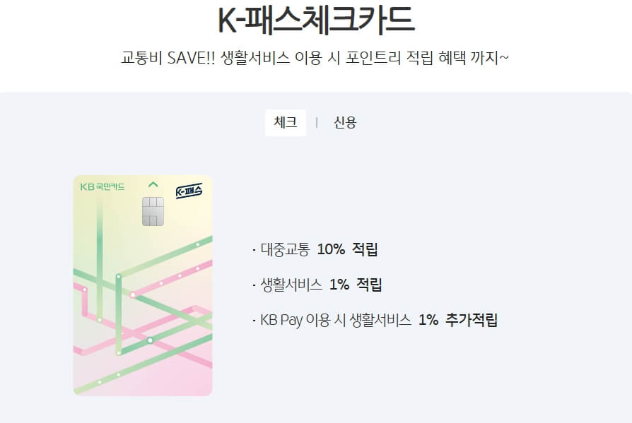 국민은행 K패스 체크카드의 혜택은 다음과 같습니다.