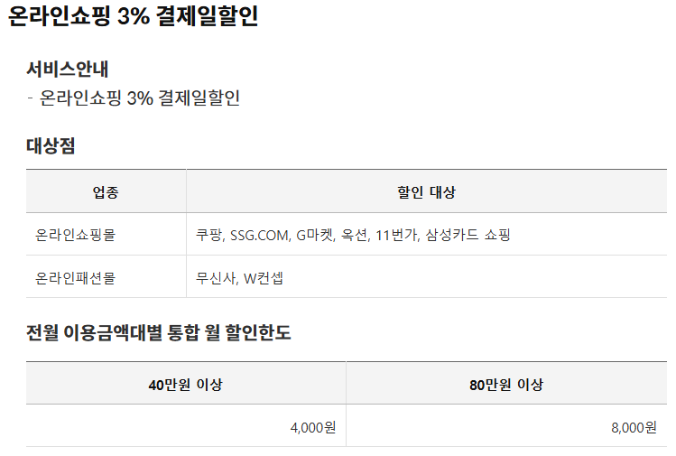 (전월 이용금액의 80만원 이상 시에는 해당 실적구간 혜택을 제공합니다.)