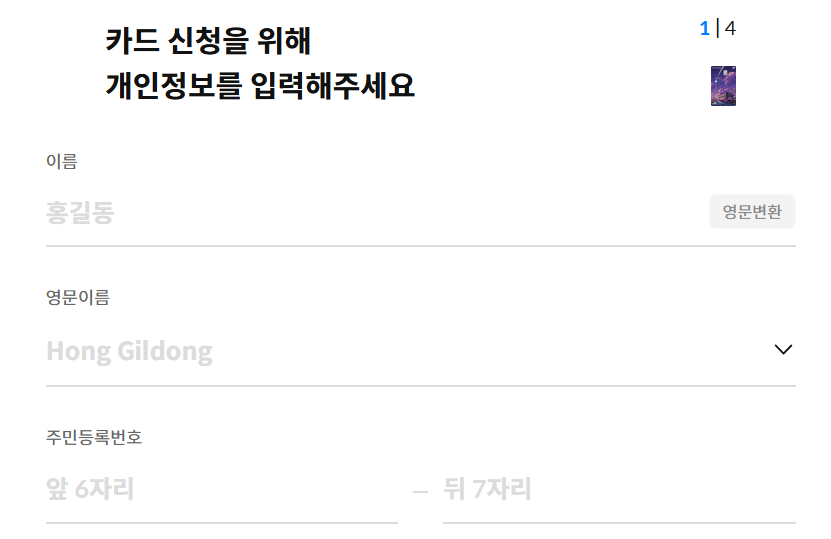 5. 카드 신청을 위한 개인정보를 입력해줍니다.