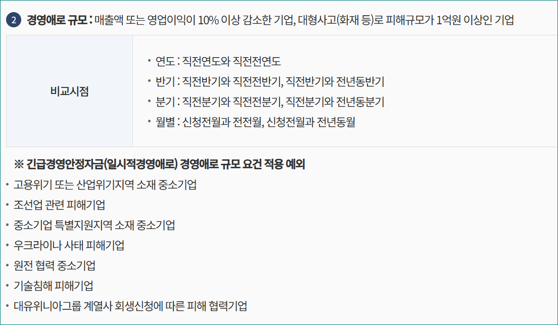 긴급경영안정자금 지원대상