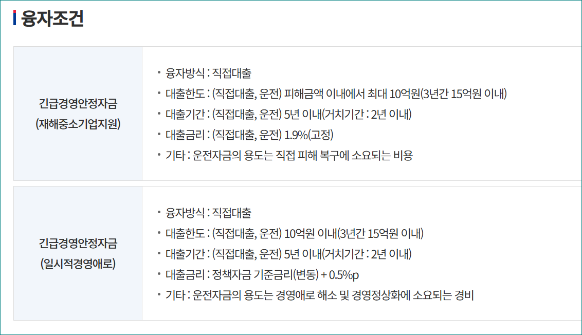 긴급경영안전자금 융자 조건
