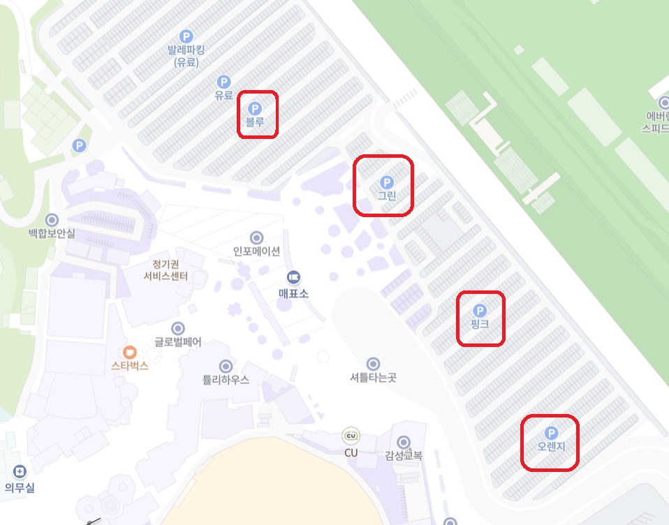 에버랜드 메표소 기준, 발레파킹 위치는 다음과 같습니다.
