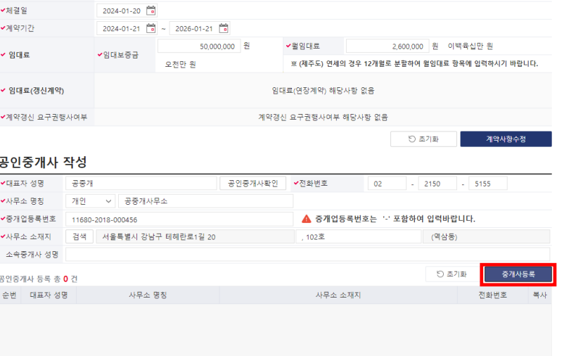 8. 다 작성하신 후 계약서 첨부 버튼을 클릭해서 임대차계약서를 등록해줍니다.