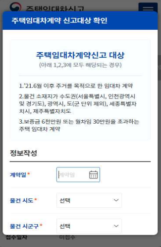 이용을 원하시면, 아래 버튼을 통해 접속한 곳에서 주택임대차계약신고를 입력 > 간편인증 > 주택 임대차계약신고를 하시면 됩니다.
