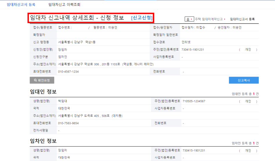 11. 다 작성후 다음으로 넘어가면, 임대차 신고내역 상세조회가 뜹니다. 다시한번 꼼꼼히 확인해줍니다.
