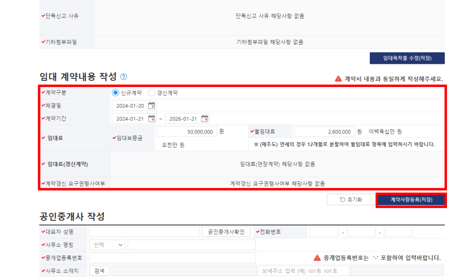 9. 임대 계약 내용을 작성합니다. 계약서에 다 있는 내용이니깐 그대로 작성하시면 됩니다.