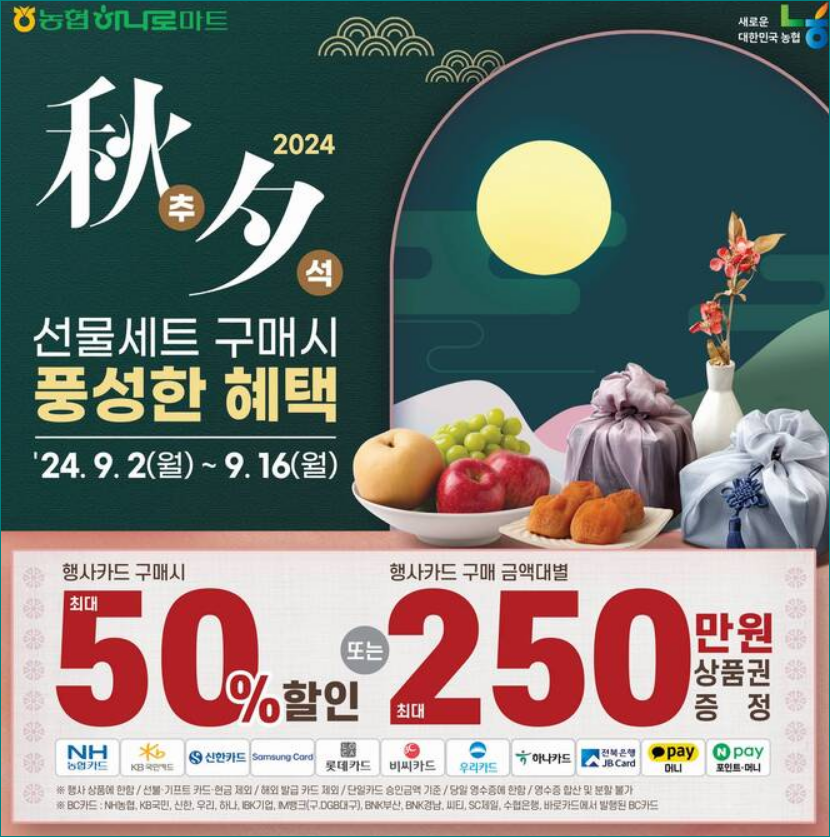 하나로마트 추석 한가위 선물세트 할인 농촌사랑상품권 행사카드
