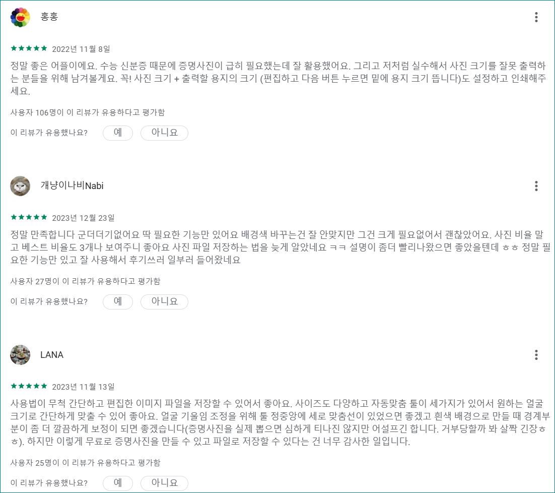 구글플레이, 앱스토어에서 '셀프 증명사진' 검색하면 나오는 어플인데 사진을 원하는 개수만큼 여러번 찍을 수도 있어서 괜찮습니다.
