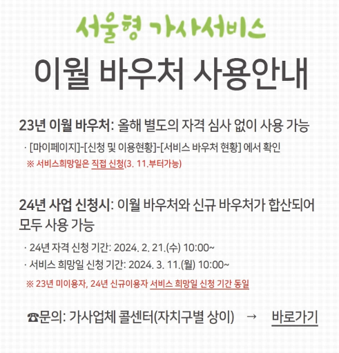 2024 서울형 가사도우미 서비스 신청방법 자격조건