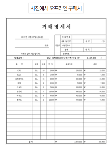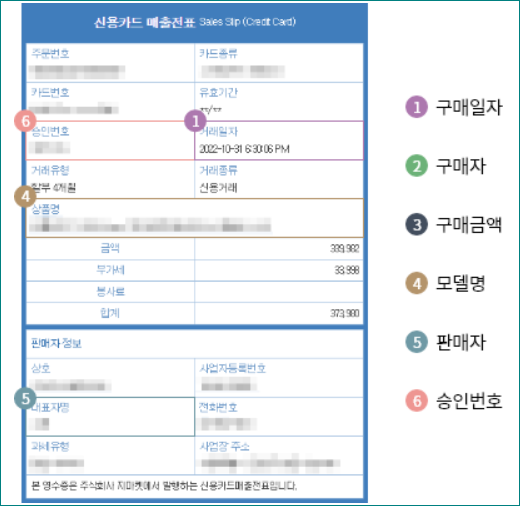 구매 금액, 구매일시, 승인번호, 등등 나와있는 영수증이 필요합니다.