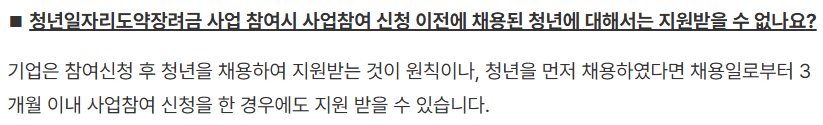 혹시 내가, 내가 운영하는 회사가 청년일자리도약장려금 지원 대상인지 궁금하시다면 아래 내용을 참고해주세요.