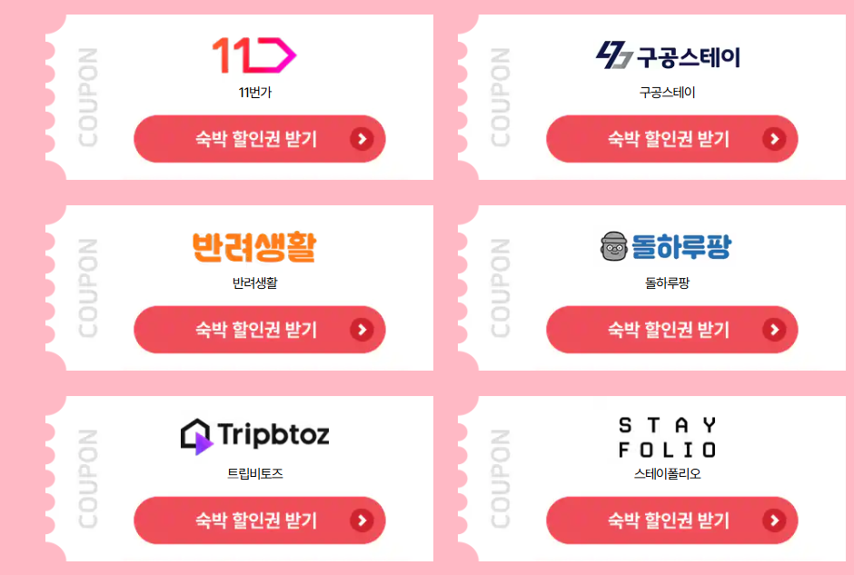 숙박 할인 쿠폰은 아래 버튼을 통해 받으실 수 있습니다.
